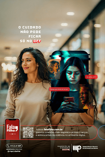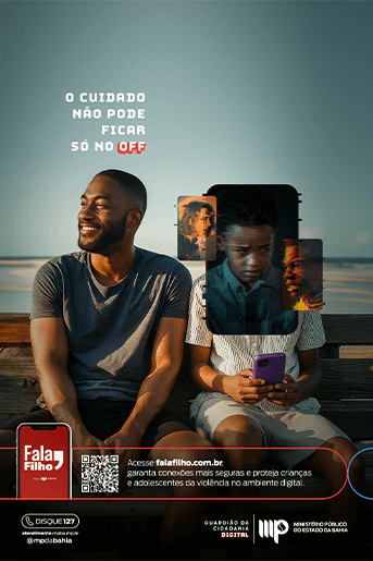 A falta de diálogo entre pais e filhos sobre o mundo digital é um abismo difícil de atravessar. E essa é a principal porta de entrada para a violência online. Por isso, criamos o Fala, Filho. Uma ferramenta do Ministério Público da Bahia que responde às principais dúvidas sobre a violência no ambiente digital.